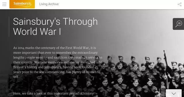 英国塞恩斯伯里超市(Sainsbury's)就是很好的例子。它所创建的“活的档案”好比一座数字博物馆,借用历史藏品展示企业的价值观和文化传统。文献通过交互型故事陈列,围绕“一战”和“过去与现在的圣诞节”等主题分成不同组别。