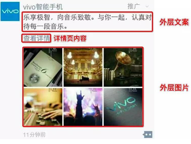 外层图片:呈现形式和个人发布的朋友圈照片一样,数量被限制在 1 张、3 张、4 张和 6 张,满足强迫症用户的需求,也避免出现一堆 9 图霸屏广告。